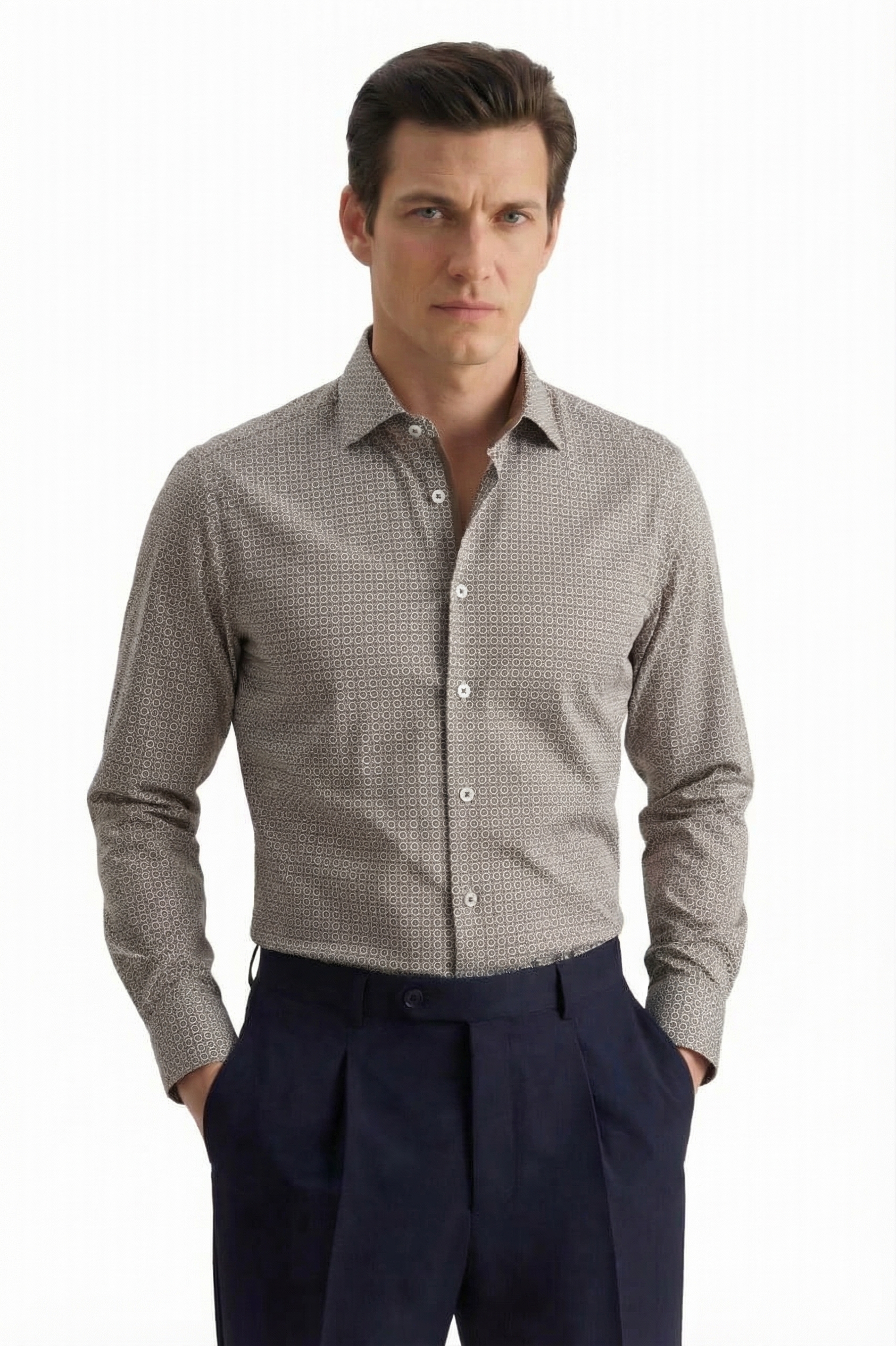 • Полуприлегающий силуэт, Классический воротник, Принт, Серый