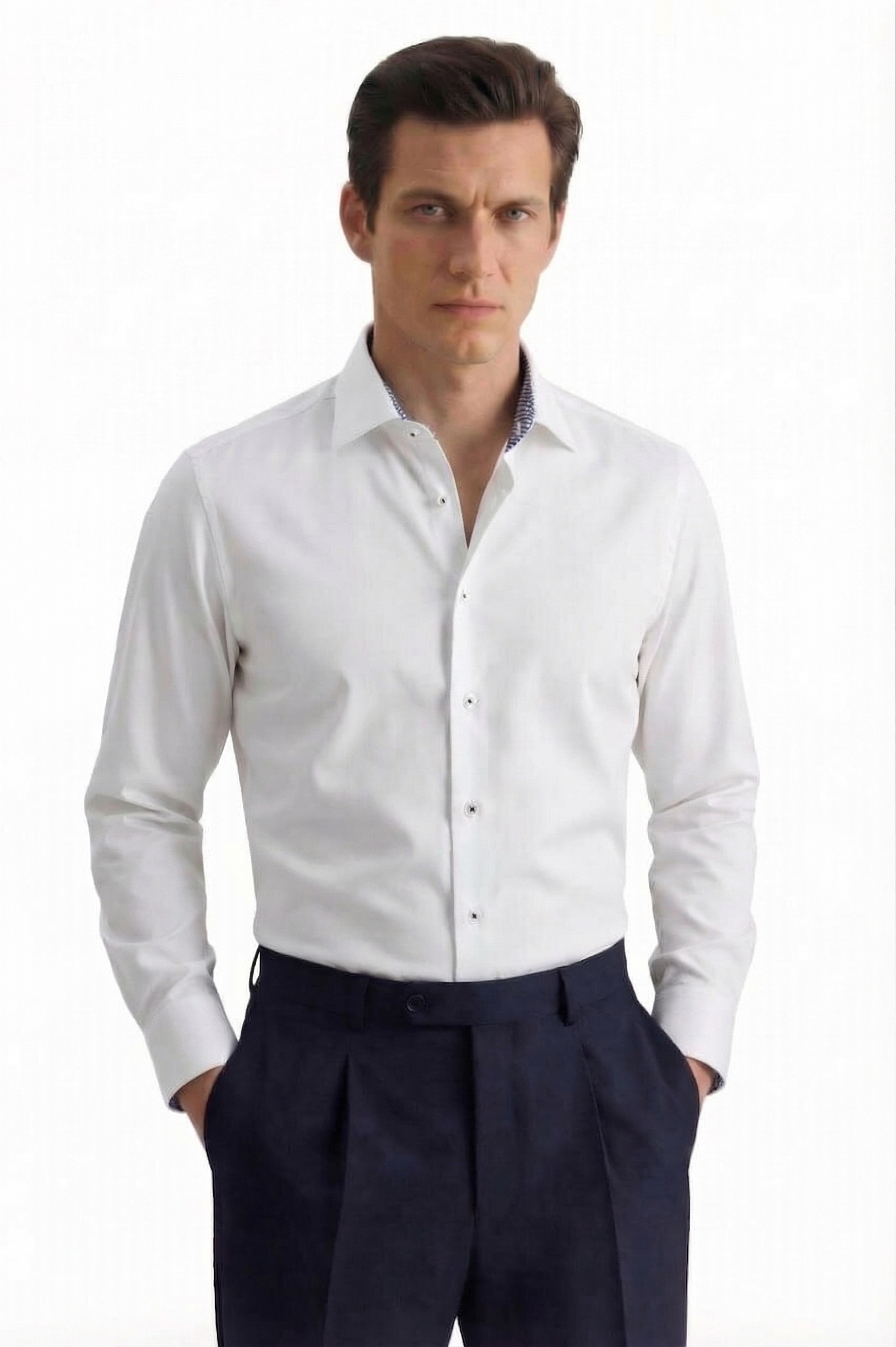 • Custom Fit, Классический воротник, Классический (на пуговице), Однотонный, Белый