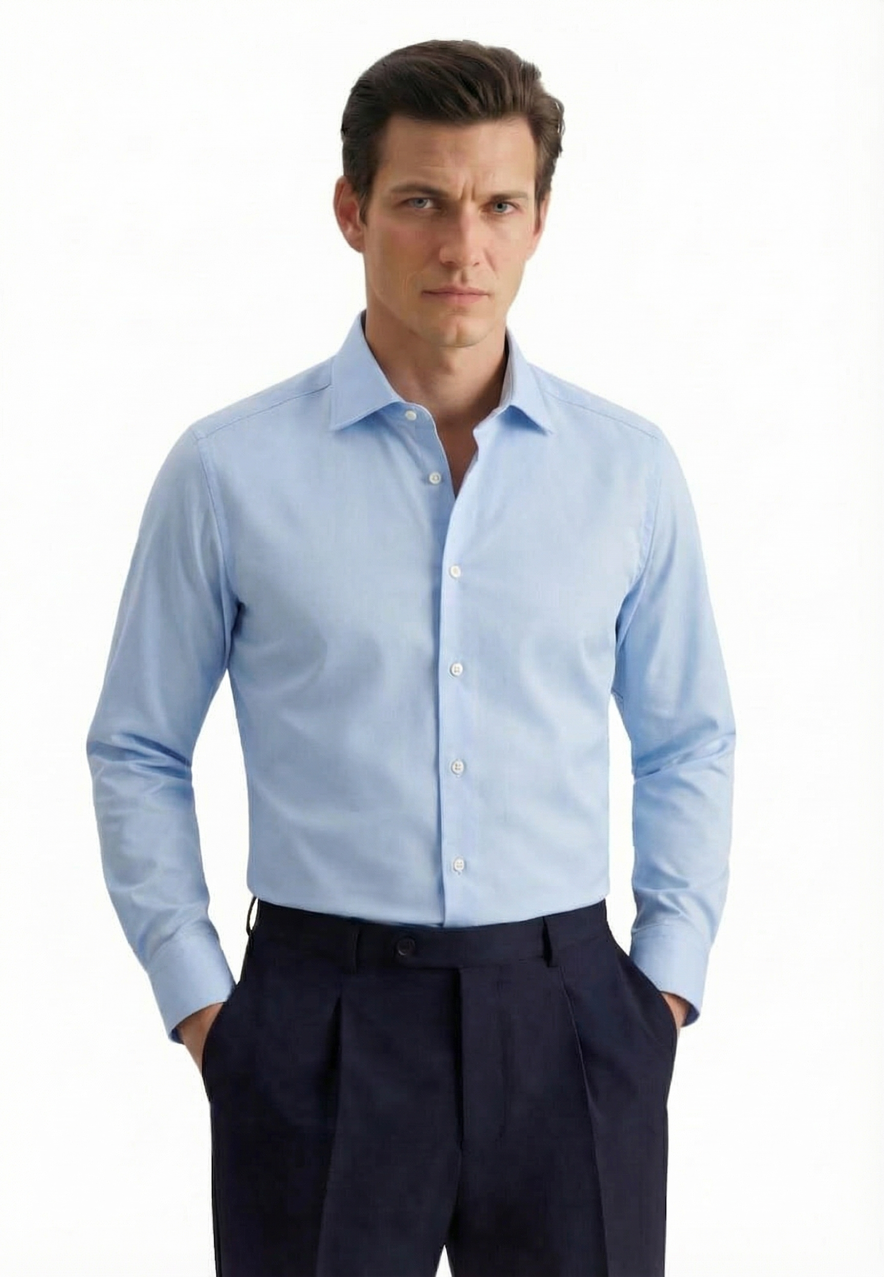 • Shaped Fit, Классический воротник, Однотонный, Голубой