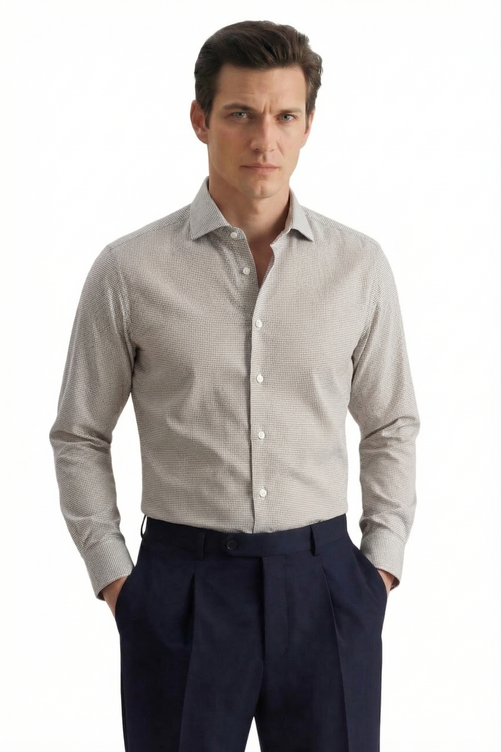 • Полуприлегающий силуэт, Классический воротник, Классический (на пуговице), Клетка, Цветной